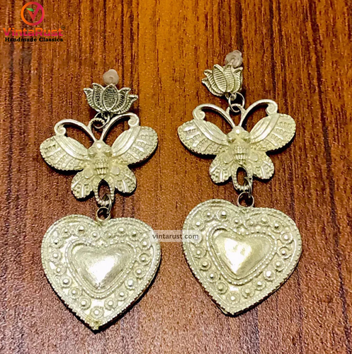 • Silver Tone Heart Shaped Dangle Earrings