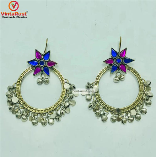 Oversized Dangle Earrings With Multicolor Glass Stones