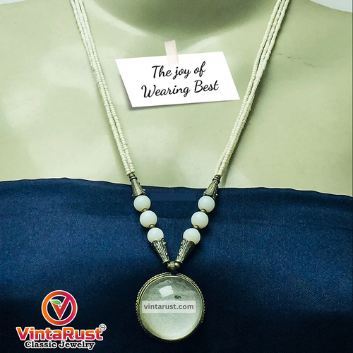 White Tribal Stone Bib Necklace, White Stone Antique Necklace