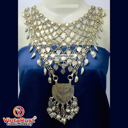Oversized Silver Kuchi Multilayers Bib Necklace