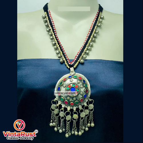 Tribal Turkman Pendant Necklace With Buttons and Bells