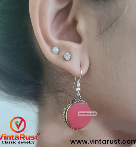 Antique Oxidized Jhumka Earrings With Glass Stones