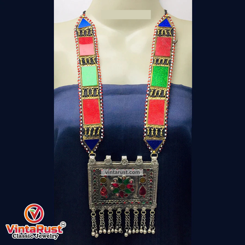 Vintage Multicolor Handmade Afghan Choker Necklace