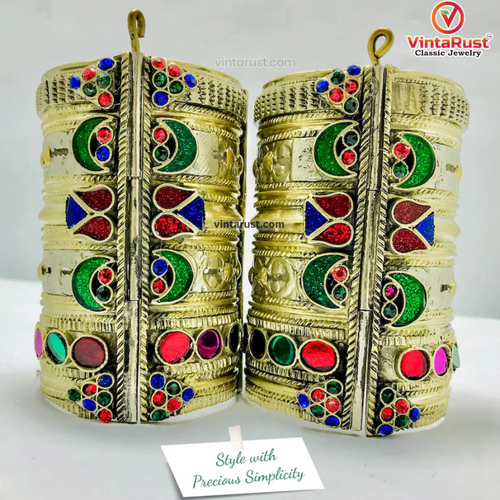 Vintage Multicolor Glass Stones Boho Cuff Bracelet