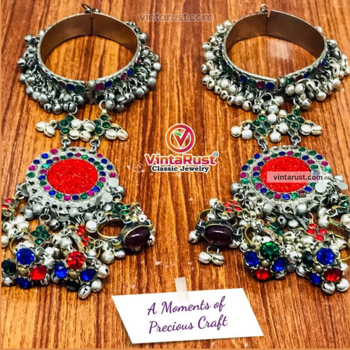 Afghan Vintage Multicolor Glass Stones Teeka Hair Jewelry