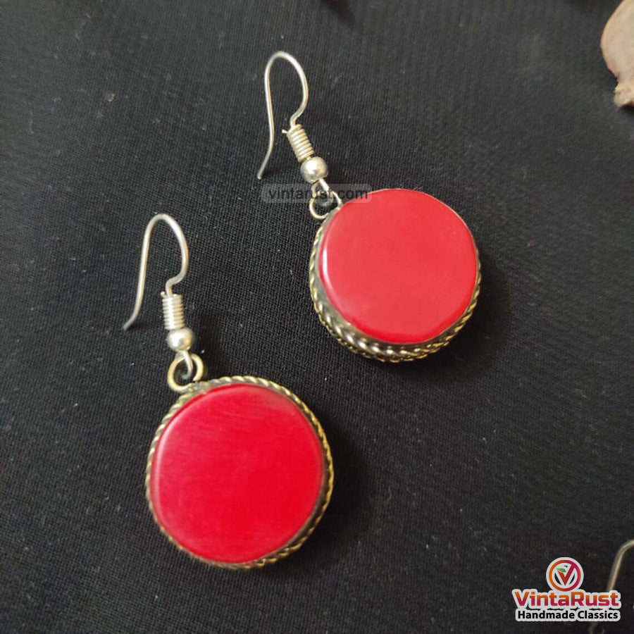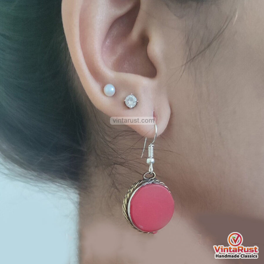 This beautifully handcrafted vintage tribal earrings are one of the classic pieces of tribal ornaments from our collection. Round-shaped semi-precious stones are inlaid in this pair of vintage earrings. These vintage tribal earrings have beautiful and intricate filigree designs decorating the boundaries around the stones on these earrings.