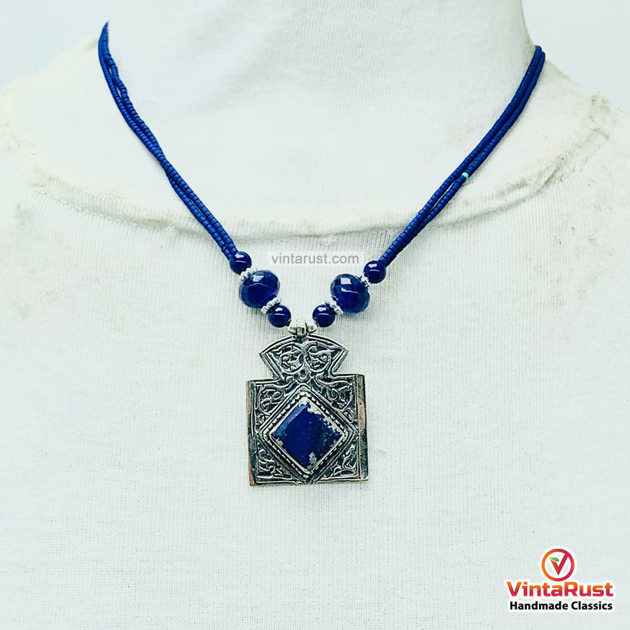 Discover exquisite craftsmanship with lapis lazuli stone pendant necklace. This handmade jewelry piece is a perfect blend of elegance and artistry, designed to elevate your style and capture attention. This pendant is carefully crafted by skilled artisans, ensuring a unique and high-quality accessory that you'll cherish.