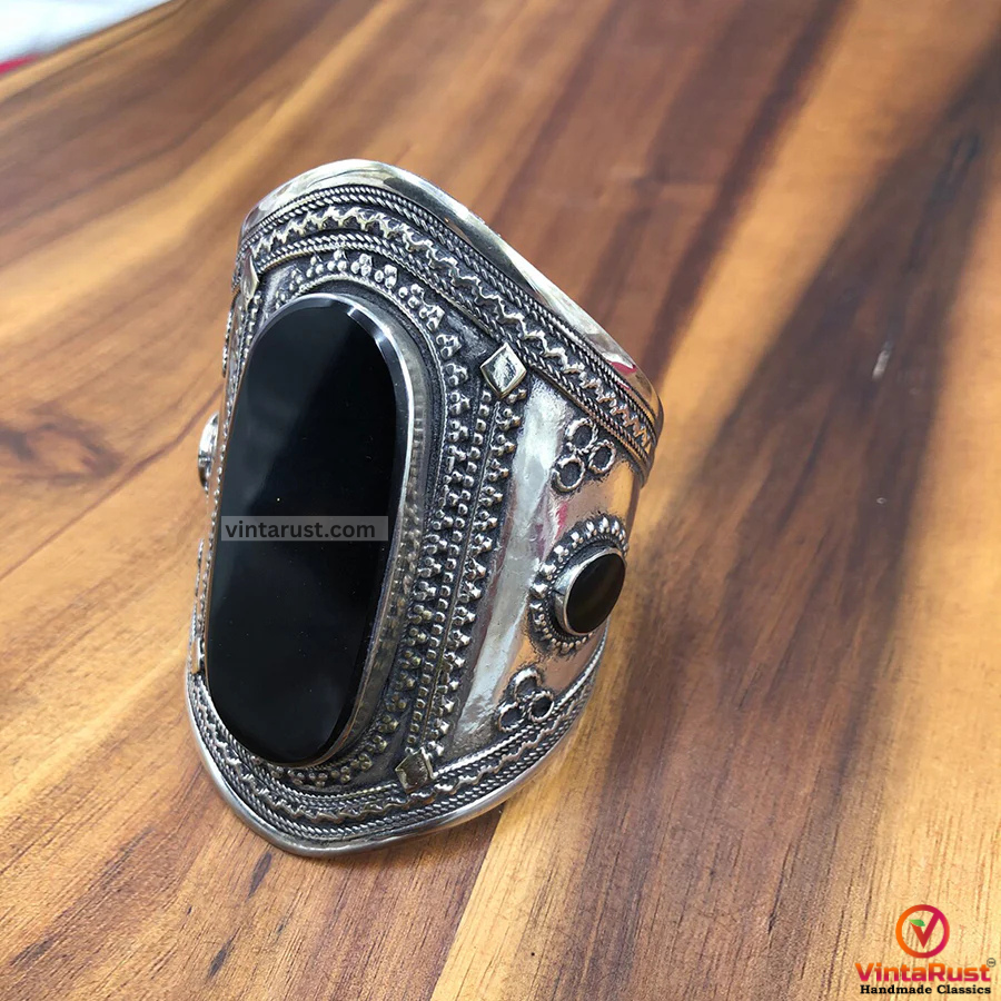 The tribal cuff bracelet is an embellished craft, handmade by the local artisans of Himalayan region. The intricate motifs are carved on both sides of the cuffs, complimented by the embedded stone, flaunting all the tribal vibes. The light in weight, yet elegant pick is good to go with any traditional or trendy outfit, as it would get along with any of your chosen style.