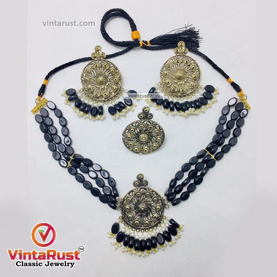 Black Beaded Jewelry Set: 176 Gram