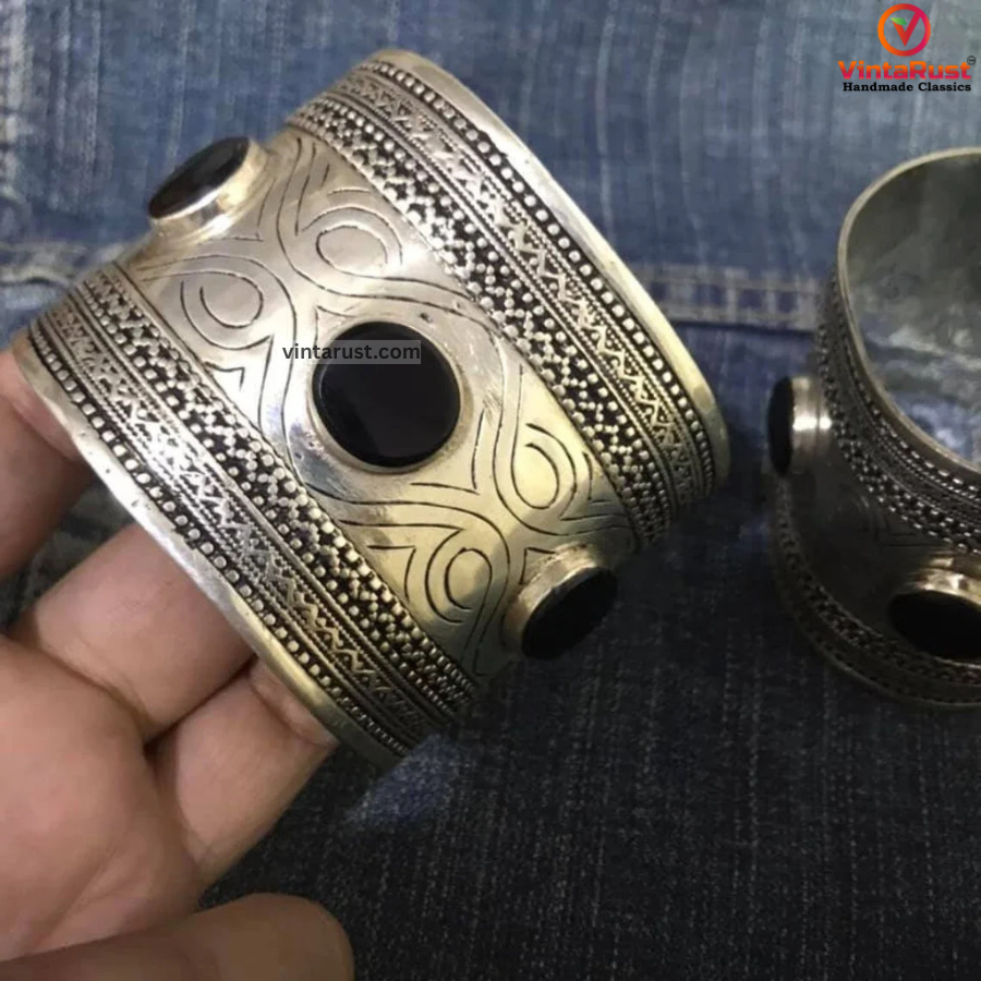 This exquisite tribal handcuff is an addition to your collection which will complete your look. The sparkle after wearing this delicate and enthralling piece of tribal jewelry is what cannot be defined in words. The pattern crafted on this piece of art is stunning. The intricate design crafted on the borders of this tribal piece is giving historic vibes. This is a broad tribal handcuff which is completely giving tribal look.