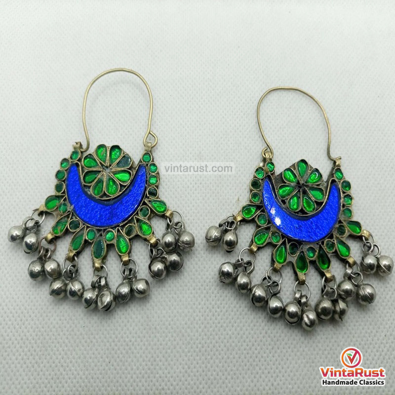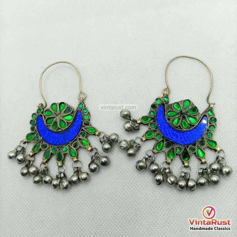 These ornaments are handmade by the local tribesmen of South Asia while most of our collection is comprised of kuchi, Turkmen, and Bohemian style of jewelry ornaments. The 19th and 20th-century ornaments are reproduced into their original shapes. The local tribe's women wear these crafts to date along with their traditional attires on special occasions. The Kuchi style of the earrings is traditionally associated with the nomadic tribes of Afghanistan and Pakistan, and these earrings are a beautiful representation of that heritage. They are perfect for adding a pop of color and culture to any outfit, and the quality craftsmanship ensures they will be a treasured piece of Dangling bell earrings jewelry for years to come.