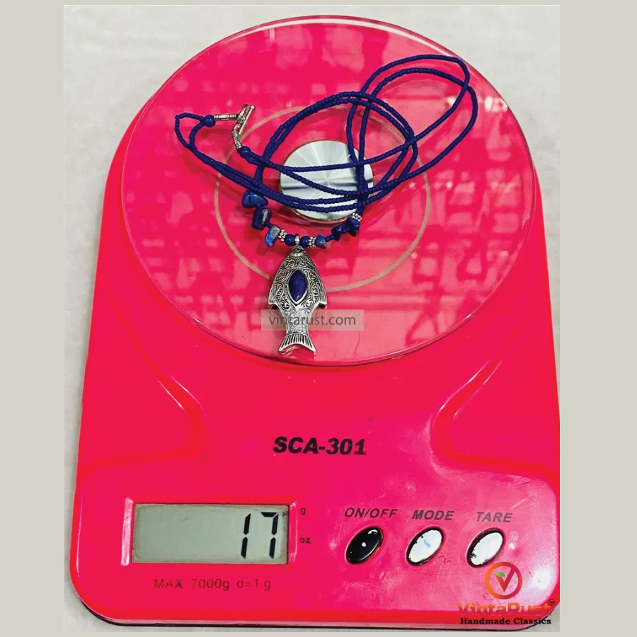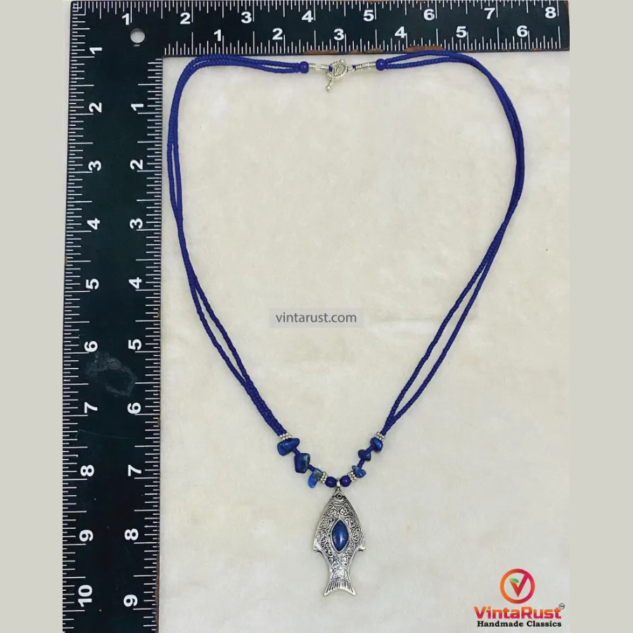 This handmade necklace is made with a blue Lapis Lazuli stone. The stone pendant has a unique and elegant look. Its handmade touch makes it stand out beautifully.