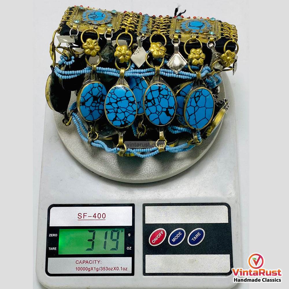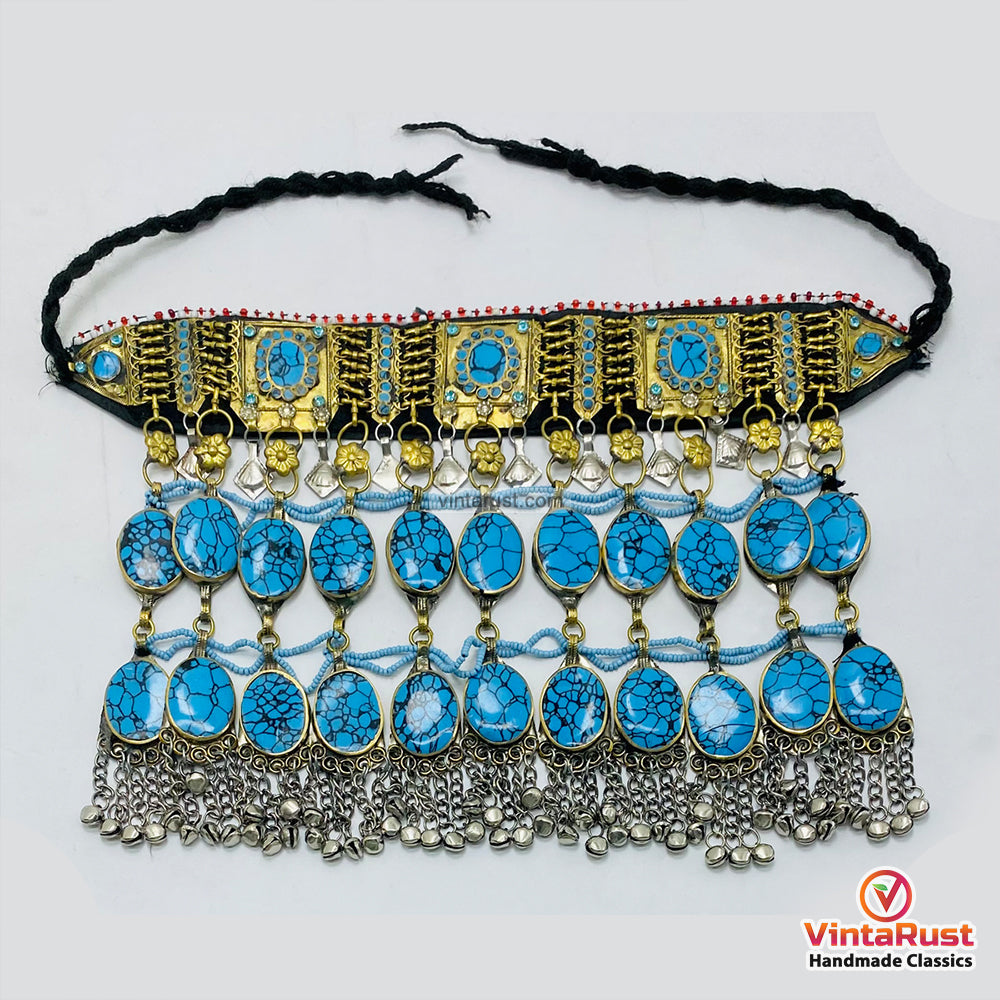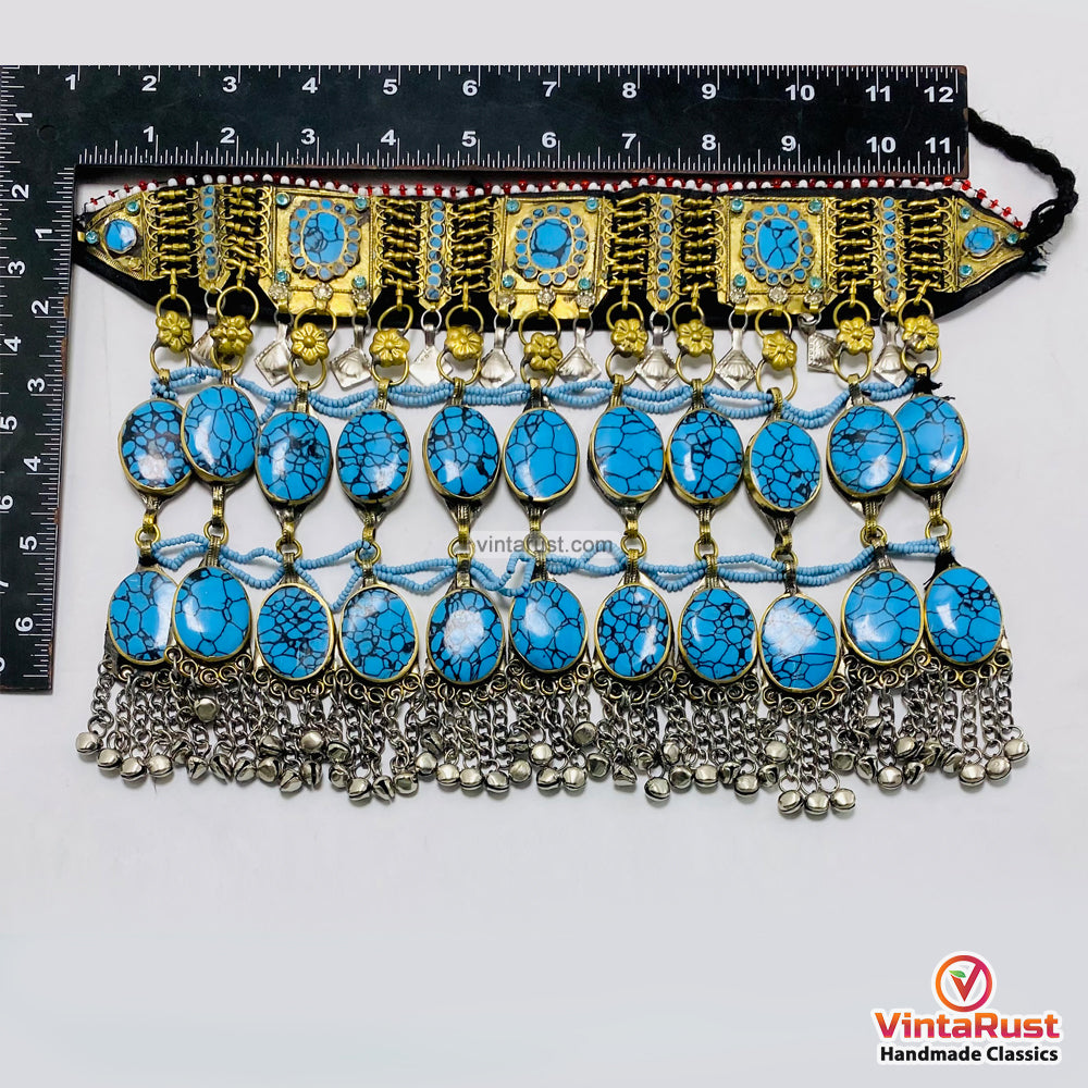 Embrace timeless tribal elegance with this Bohemian Afghan Turquoise Stone Choker Necklace, a stunning piece inspired by traditional Kuchi craftsmanship. Handcrafted with vibrant turquoise stones and intricate metal detailing, this choker radiates bold, cultural charm. Each element is thoughtfully arranged to highlight the raw beauty and vintage essence of Afghan jewelry, making it a perfect statement accessory for boho lovers and free-spirited souls. Whether paired with a simple outfit or festival attire, this choker adds an instant touch of ethnic allure and individuality.