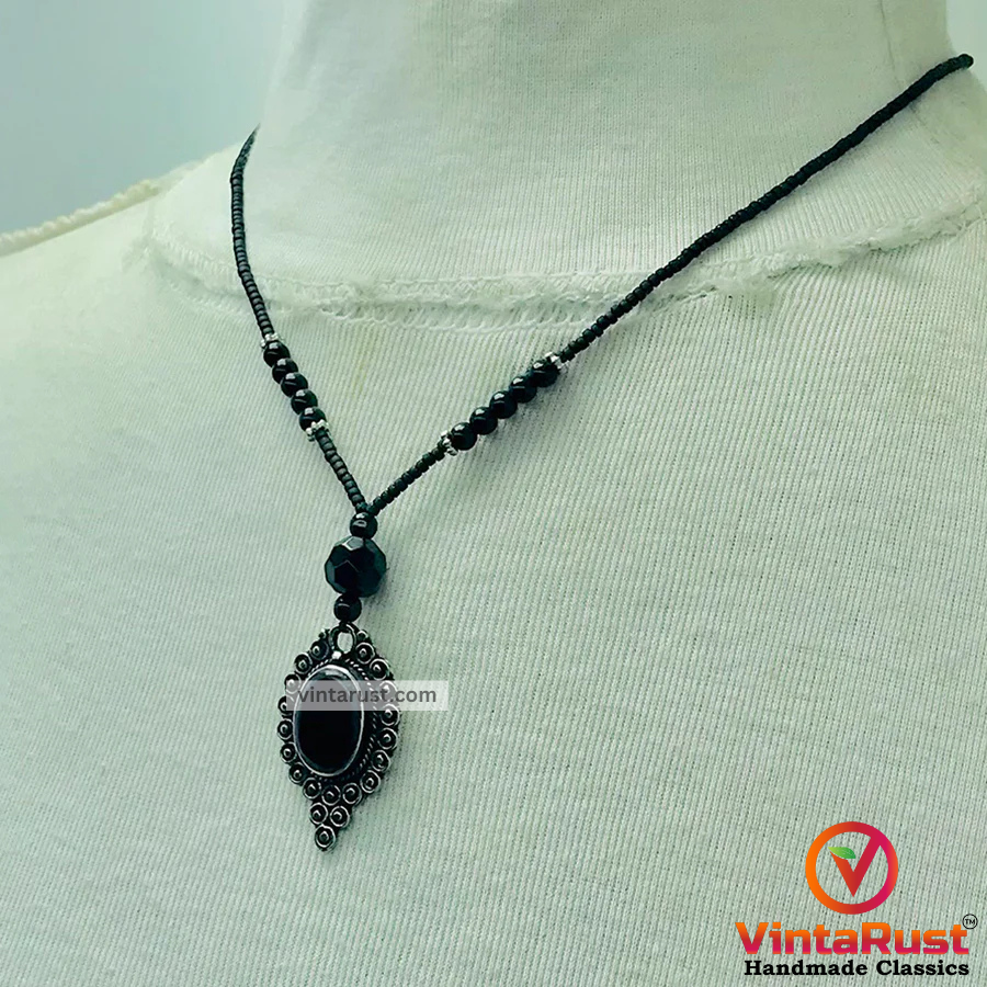 Embrace bold, bohemian elegance with our Bohemian Black Onyx-Style Pendant Necklace. This captivating piece combines the timeless allure of black onyx jewelry with a free-spirited design, making it the perfect accessory for any occasion. Featuring a striking black onyx-style pendant suspended on a delicate chain, this necklace jewelry is as versatile as it is eye-catching. Ideal for those who love making a statement, this necklace brings sophistication and a hint of mystery to both everyday wear and special occasions.
