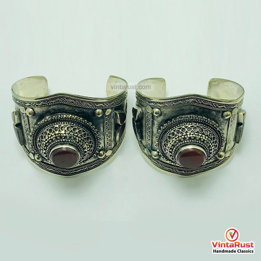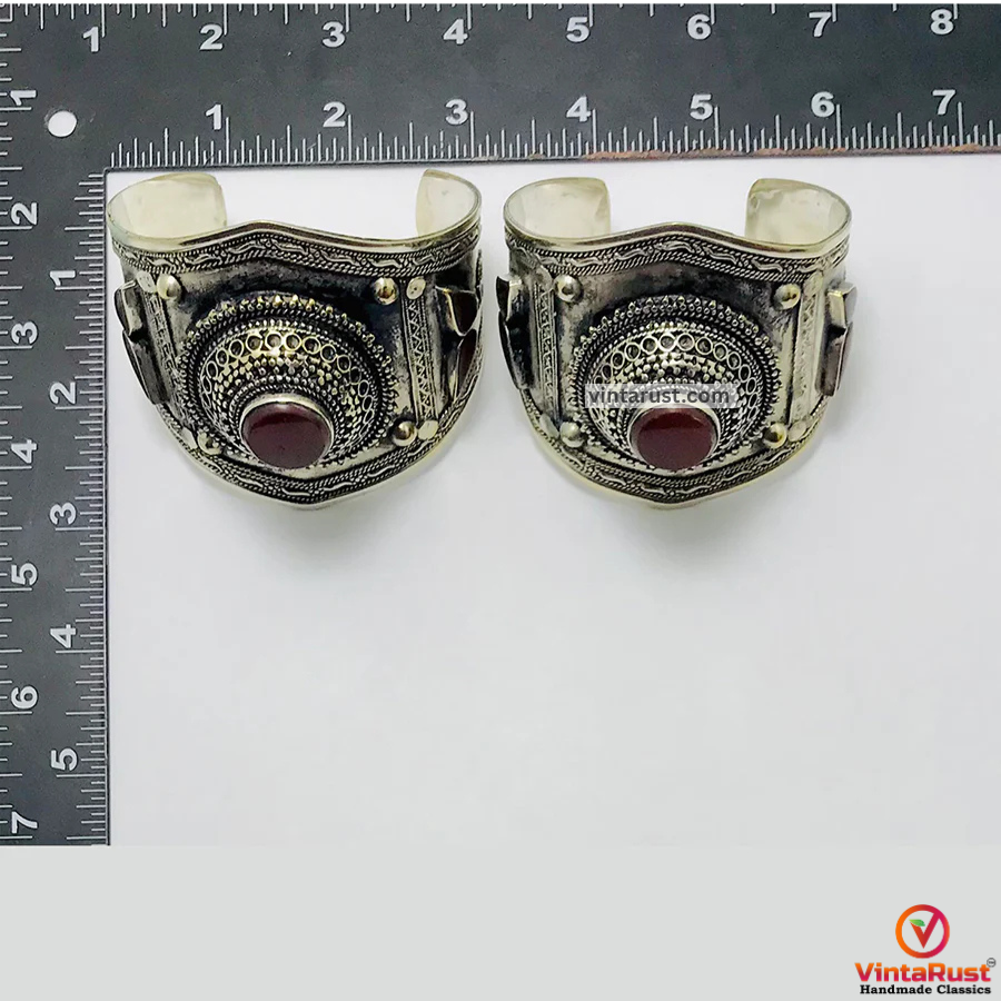 This silver rustic toned tribal handcuff is a great addition to your jewelry collection which will complete your look. You can buy a single carnelian cuff bracelet and a pair of these antique tribal handcuffs in a reasonable price. The delicate look after wearing these enthralling pieces of tribal jewelry is what cannot be defined in words.