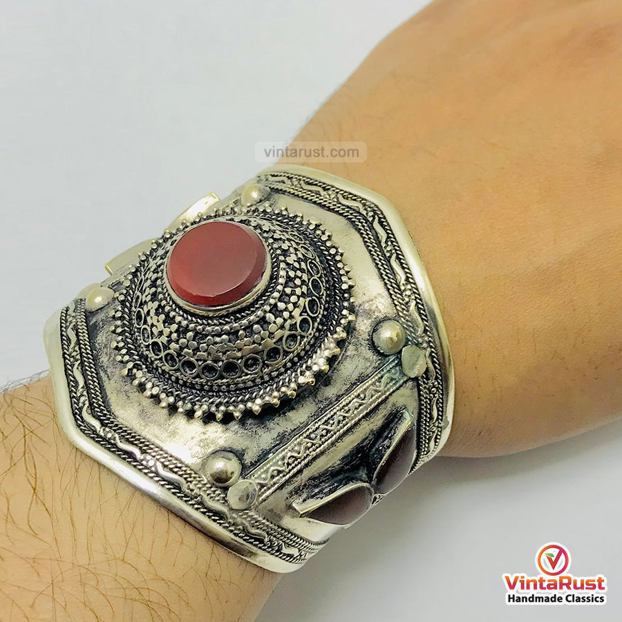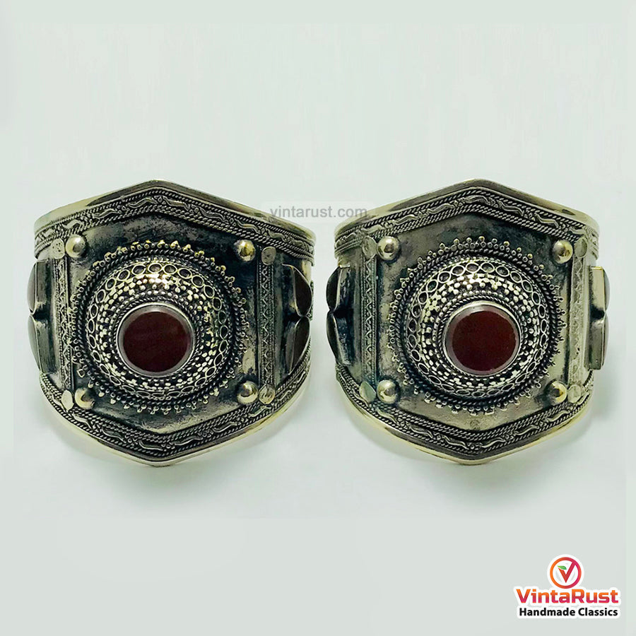 This antique carnelian tribal piece of jewelry is crafted by the highly skilled natives of Central Asia. These people have their own unique style which is depicted through this extraordinary piece. Made with the best quality of material this semi-precious carnelian stones tribal cuff bracelet is beautified with antique engraved design.