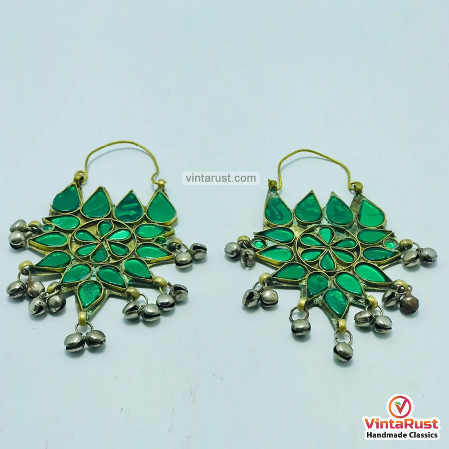 These silver kuchi antique tribal earrings are one of the most demanded jewelry pieces we have in our collection. These tribal earrings are crafted with lots of love and devotion by indigenous Central Asia and especially from the tribes of Kuchi. Lovely green glass stones are used to enhance the charm of this tribal piece.