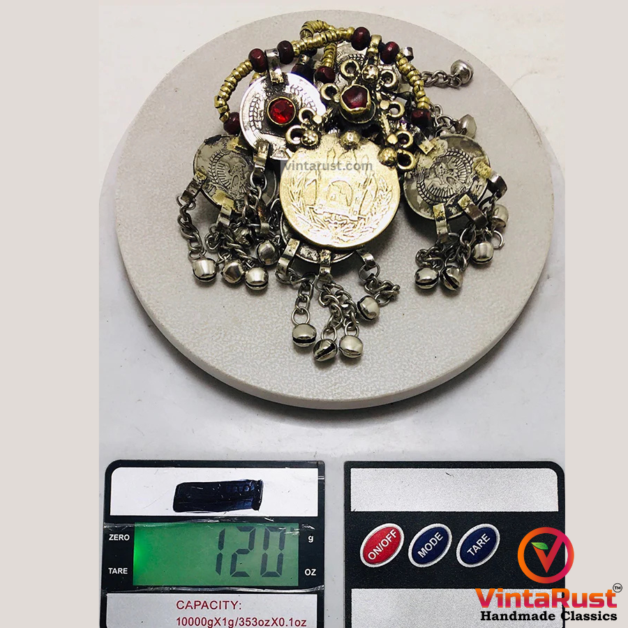 The dangling tassels on the coin pendants make a pleasing sound with every movement. This tribal necklace made by the brilliant craftsmen is a unique and elegant piece of tribal jewelry. Made with the fine quality metal alloy. This tribal choker necklace is epitome of traditional and tribal jewelry.