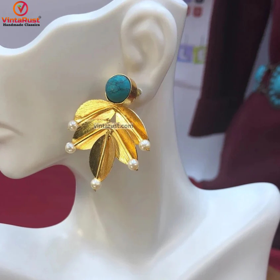 Whenever you will wear these elegant earrings, you will feel adorable. You can give these earrings as a gift to your special ones to make them feel special. The turquoise stones add a pop of color and contrast against the metal, making these earrings a statement piece that will easily elevate any outfit. The earrings are lightweight and comfortable to wear, making them perfect for everyday wear or special occasions. With their timeless elegance and exceptional craftsmanship, the Floral Turquoise Earrings are a must-have for any jewelry collection.
