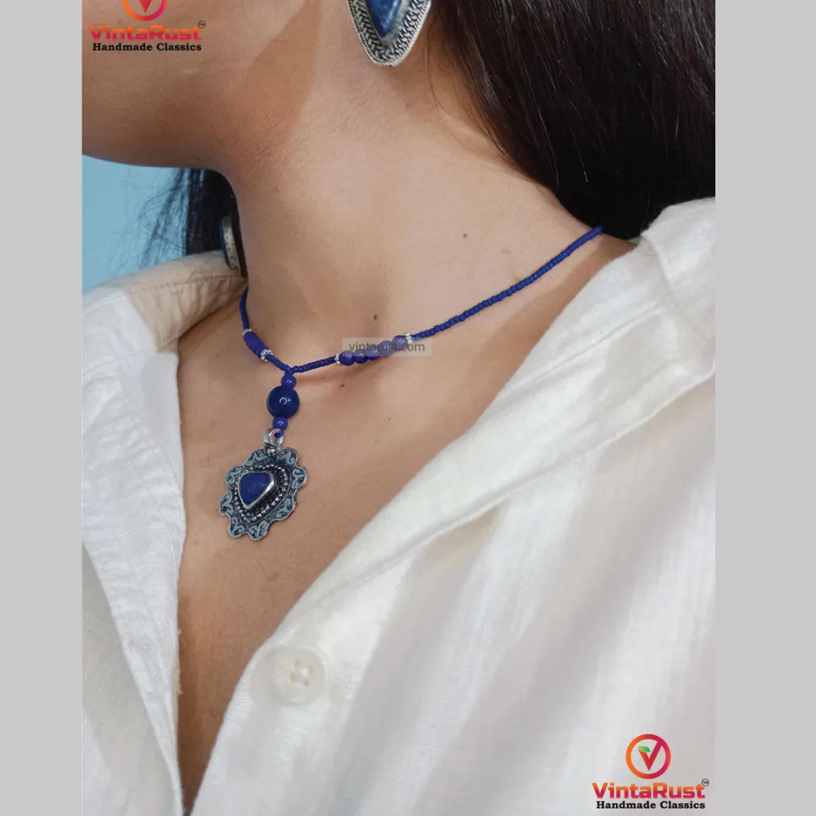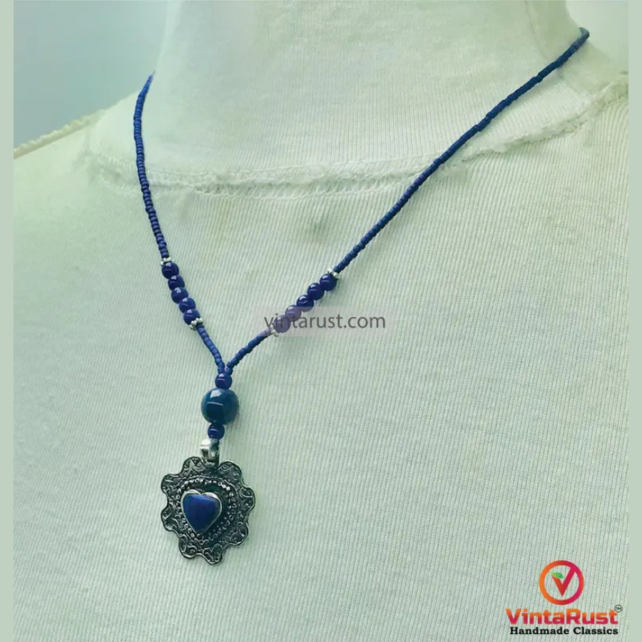 This gorgeous minimalist necklace that with antique lapis lazuli pendant. You can enhance your style game with this elegant Heart shape necklace. For people who value both contemporary simplicity and timeless beauty, this handcrafted piece is ideal. The semi-precious stones lapis lazuli necklace is an exceptional addition to any jewelry collection.