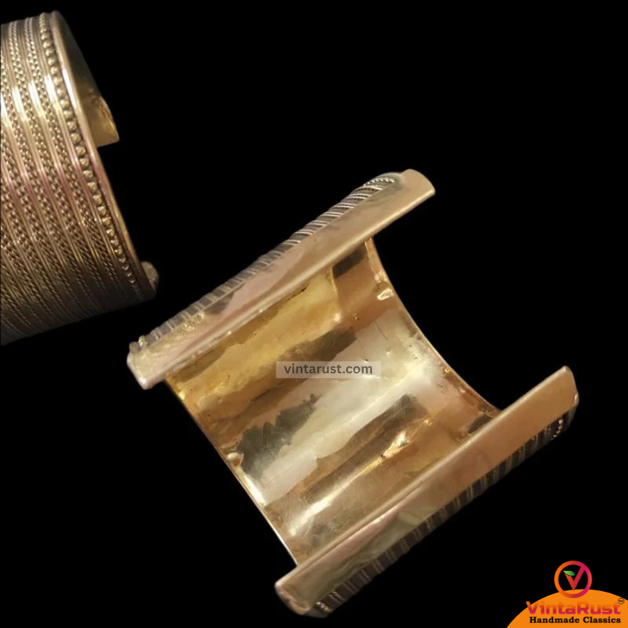 This classic bracelet is commonly known as a cuff bracelet, embellished with craved twisted patterns all around. The tribal bracelet is back open and easy to be adjusted as per the size of the wrist. The unique nomadic bracelet is an elegant ornament, handpicked for its antiquity and alluring classy style. It is made with fine quality metal alloy and soaked into rustic copper-gold hues.