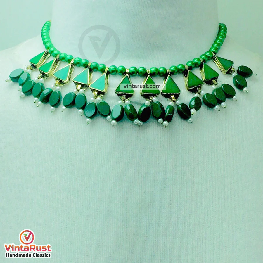 Elevate your style with this exquisite green beaded stone and pearls necklace, a perfect blend of elegance and boldness. Designed for those who appreciate unique handmade jewelry, this piece showcases finely crafted green beads interspersed with delicate pearls, creating a harmonious balance of sophistication and charm. Its timeless design makes it a standout accessory for both casual and formal occasions.