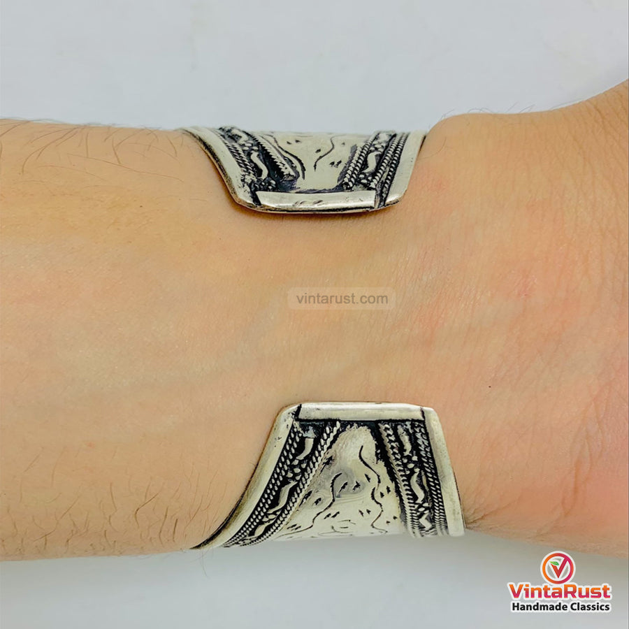 This silver toned tribal handcuff is a great addition to your jewelry collection which will complete your look. You can buy a single cuff bracelet and a pair of these antique tribal handcuffs at a reasonable price. You can adjust this tribal cuff bracelet according to your wrist size.