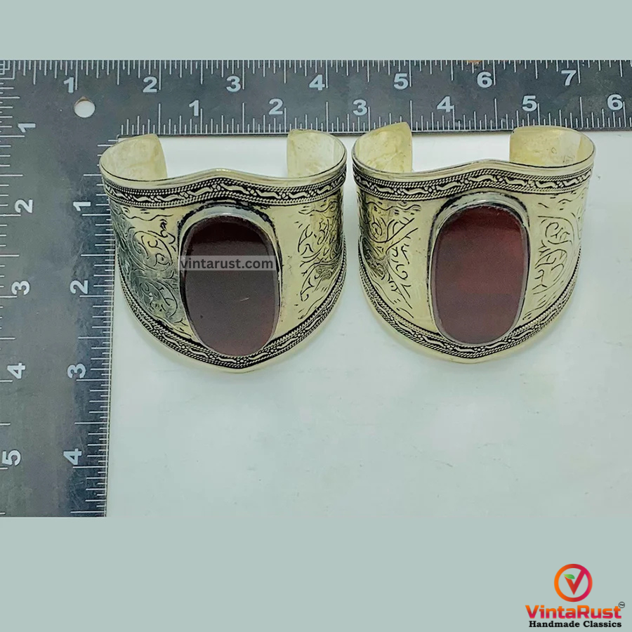 This antique tribal piece of jewelry is crafted by the highly skilled natives of Central Asia. They have their own unique style which is depicted through this extraordinary piece. Made with the best quality of material this tribal cuff bracelet is beautified with semi-precious brown carnelian stone and lapis lazuli stone.