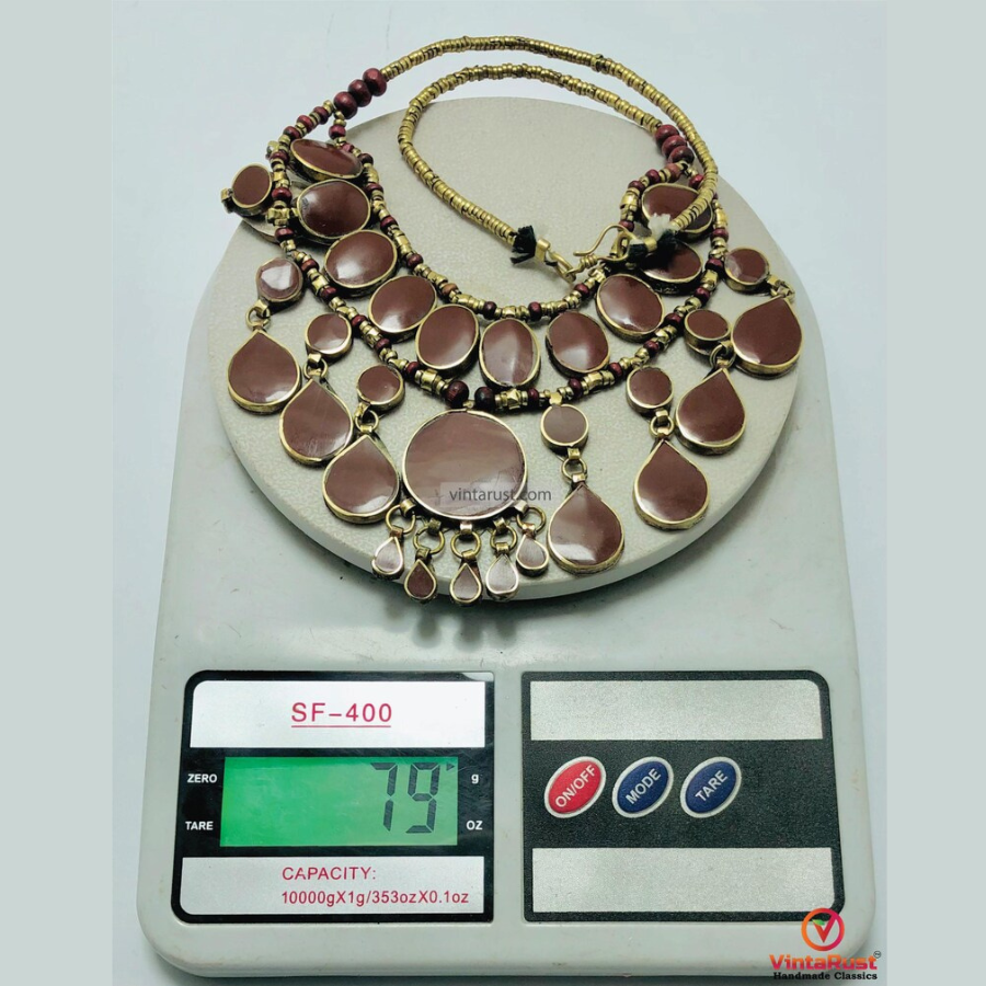 • This brown stone tribal necklace is made with great care and devotion. This vintage jewelry piece is easy to wear. You can wear it to a formal gathering or any festival. It perfectly suits you on any type of costume. This tribal kuchi necklace is the bride’s best friend from the wedding day till the end.