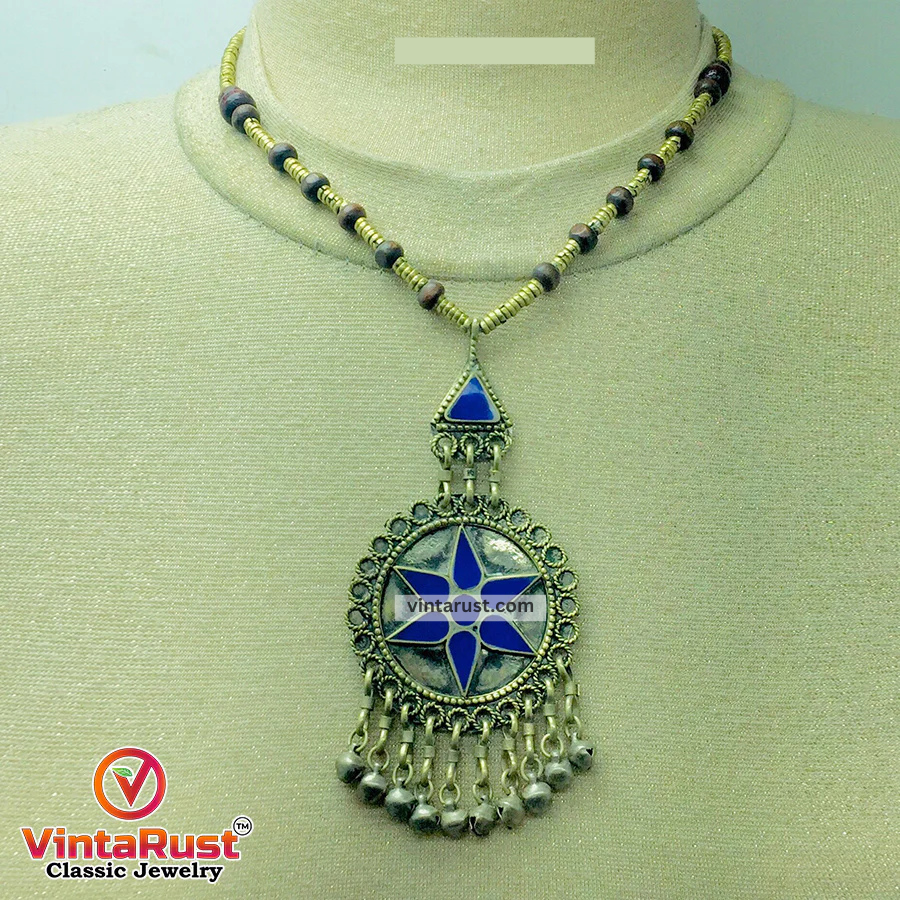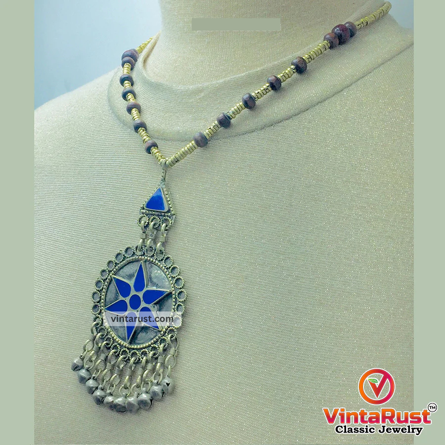 This beaded lapis lazuli pendant gives a full classy look. The depth and royal feel will elicit while wearing this beautiful necklace. This gorgeous piece has a metal lock at the end of the chain. Nicely polished lapis lazuli stones are used to make this necklace more pretty.