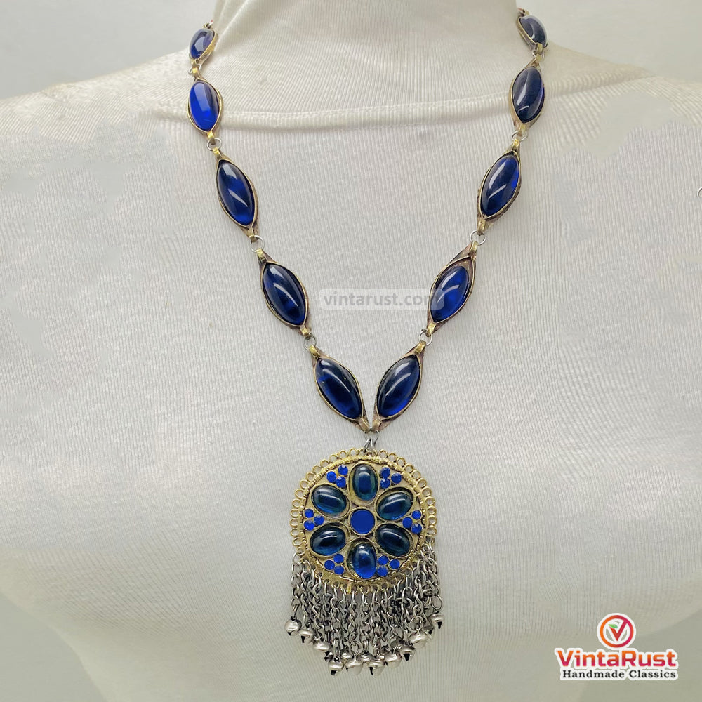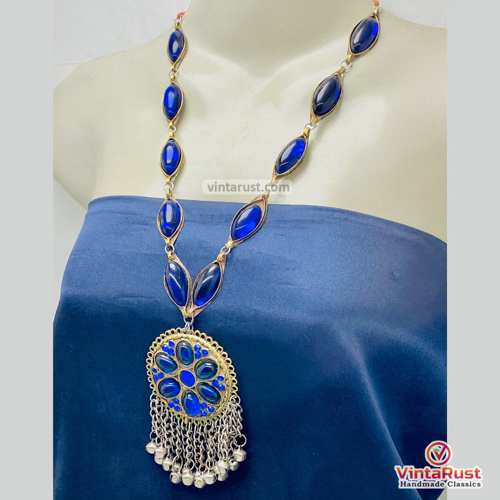 This Handmade Blue Glass Stone Tassel Statement Necklace is a striking blend of color, movement, and artisan craftsmanship. The vibrant blue glass stone creates a bold focal point, giving the necklace a rich, eye-catching presence that elevates any outfit.