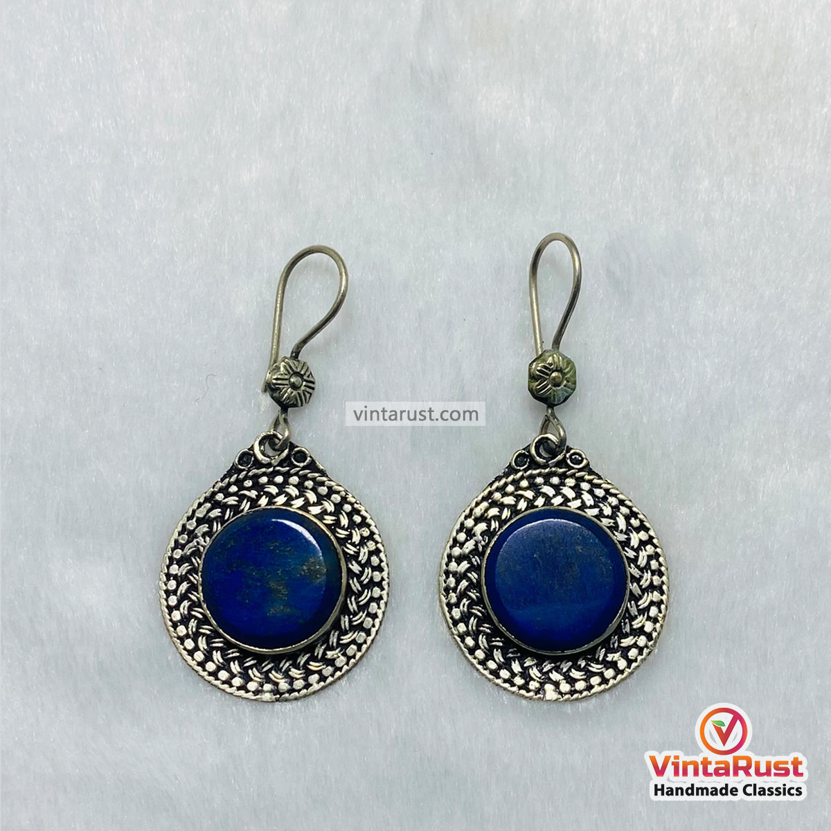 Add a touch of timeless elegance to your style with these Handmade Lapis Lazuli Silver Dangle Earrings. Featuring round, deep blue Lapis Lazuli gemstones set in a sleek silver tone, these earrings beautifully capture bohemian charm and classic sophistication. Each piece is handcrafted by skilled artisans, making every pair truly one-of-a-kind.