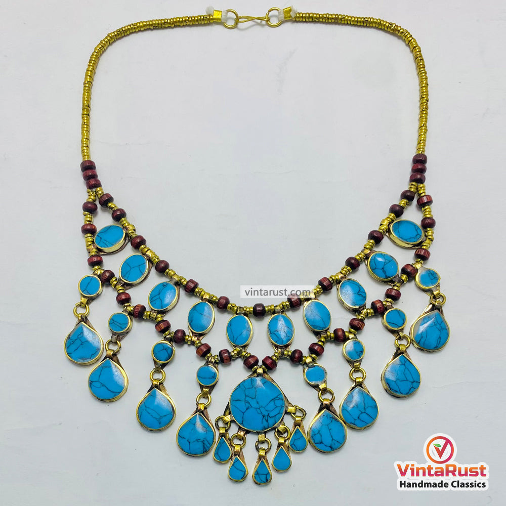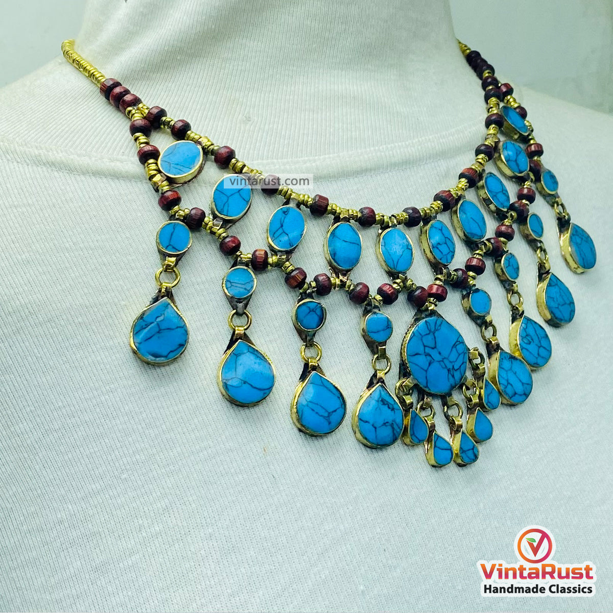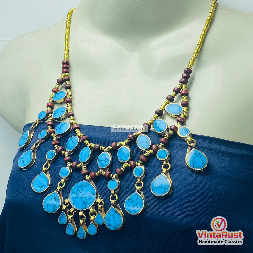 Perfect for layering or wearing as a bold centerpiece, this artisan turquoise stone necklace complements casual outfits, summer dresses, and ethnic ensembles alike. Whether you’re looking to express your individuality or gift someone special, this boho turquoise and wooden beaded necklace brings timeless beauty and soulful craftsmanship to any jewelry collection.