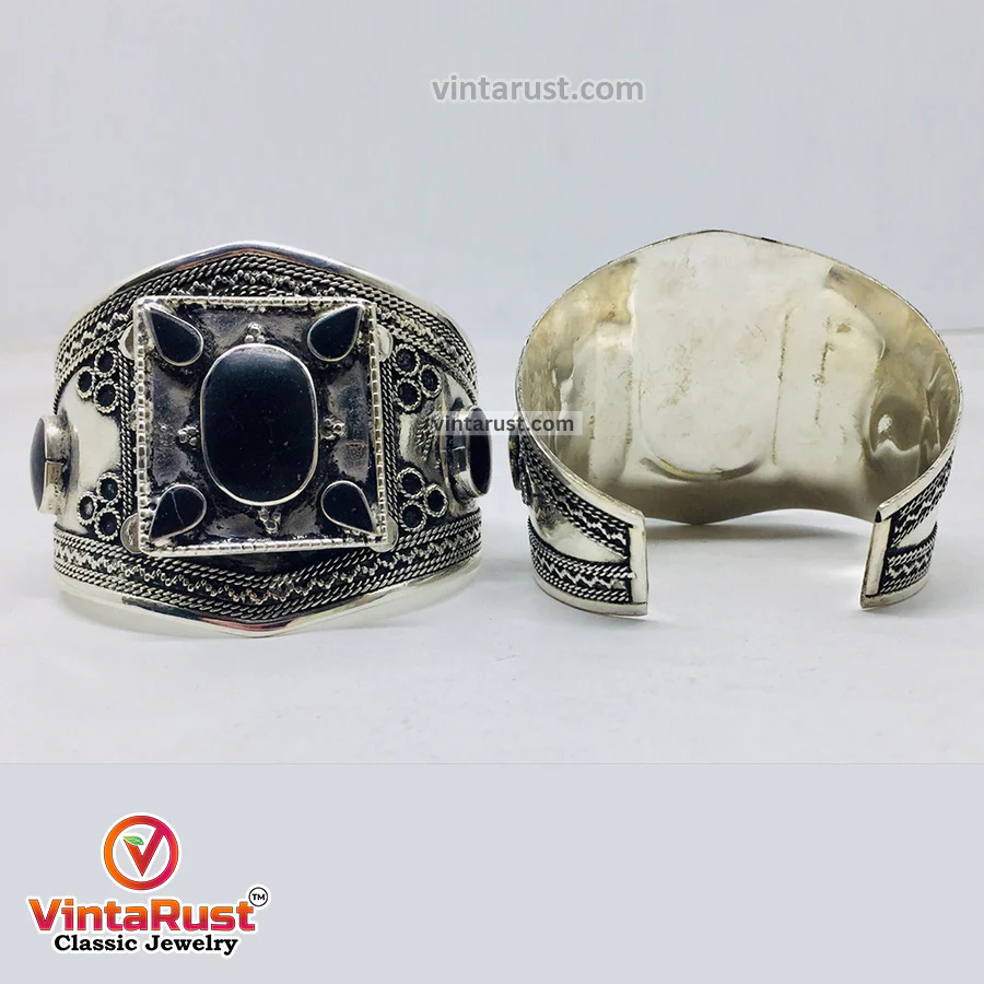 This Afghani tribal cuff is handcrafted with the finest quality of material. It is engraved with delicate filigree and hammered design all over it. This rustic-hued bracelet is light in weight and easy to wear. This cuff bracelet can be worn tightly around your arm or loosely on your wrist as well.