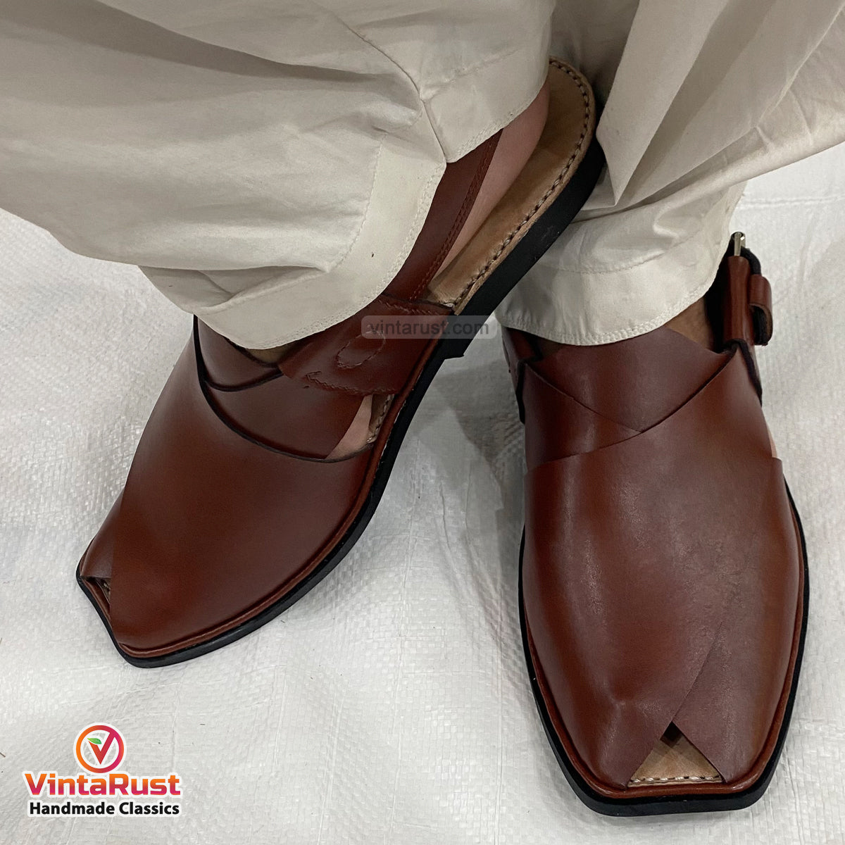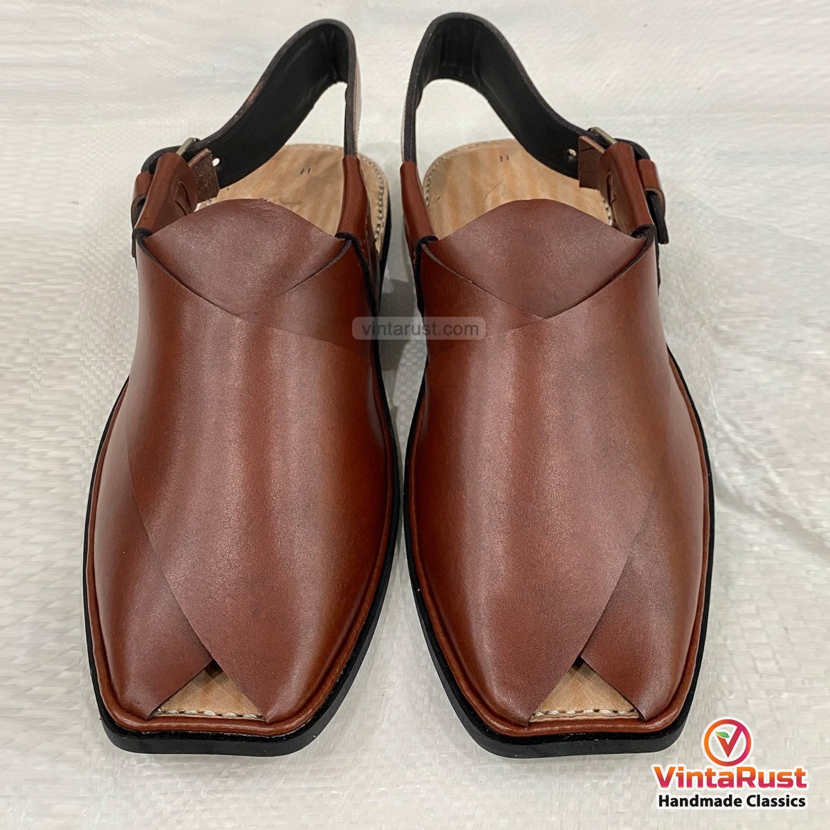 These men’s brown leather Peshawari sandals are handmade with fine detailing. The soft leather gives a comfortable feel for everyday use. The rich brown color adds a simple and classy look.
