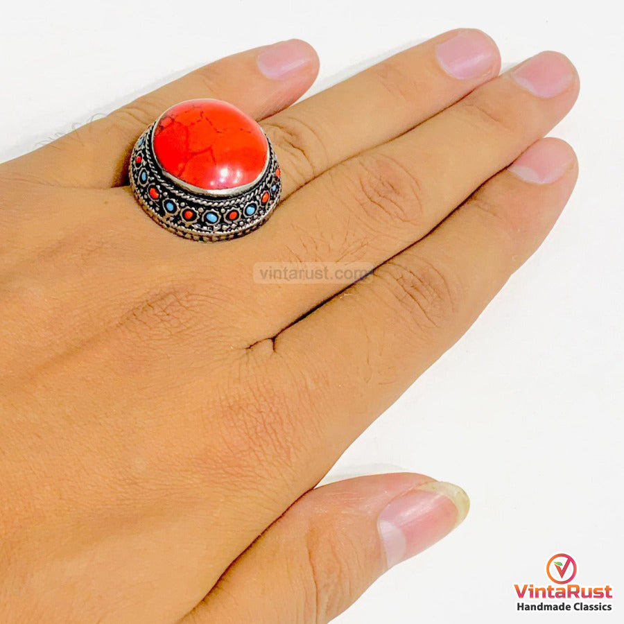 Elevate your style with the allure of this adjustable handmade coral stone tribal ring. This stunning piece is a testament to the artistry of our craftsmen and the timeless beauty of natural coral stones.