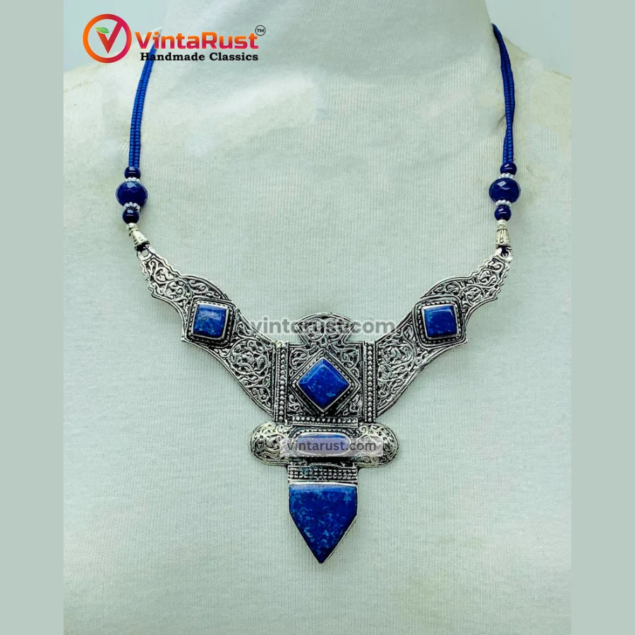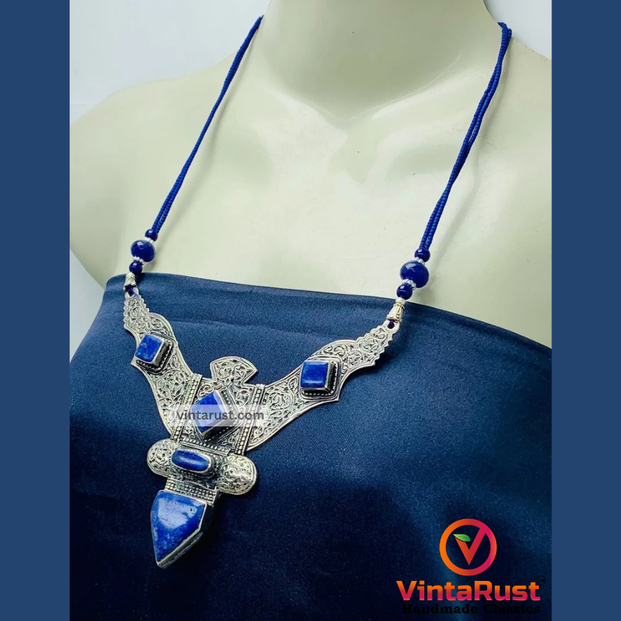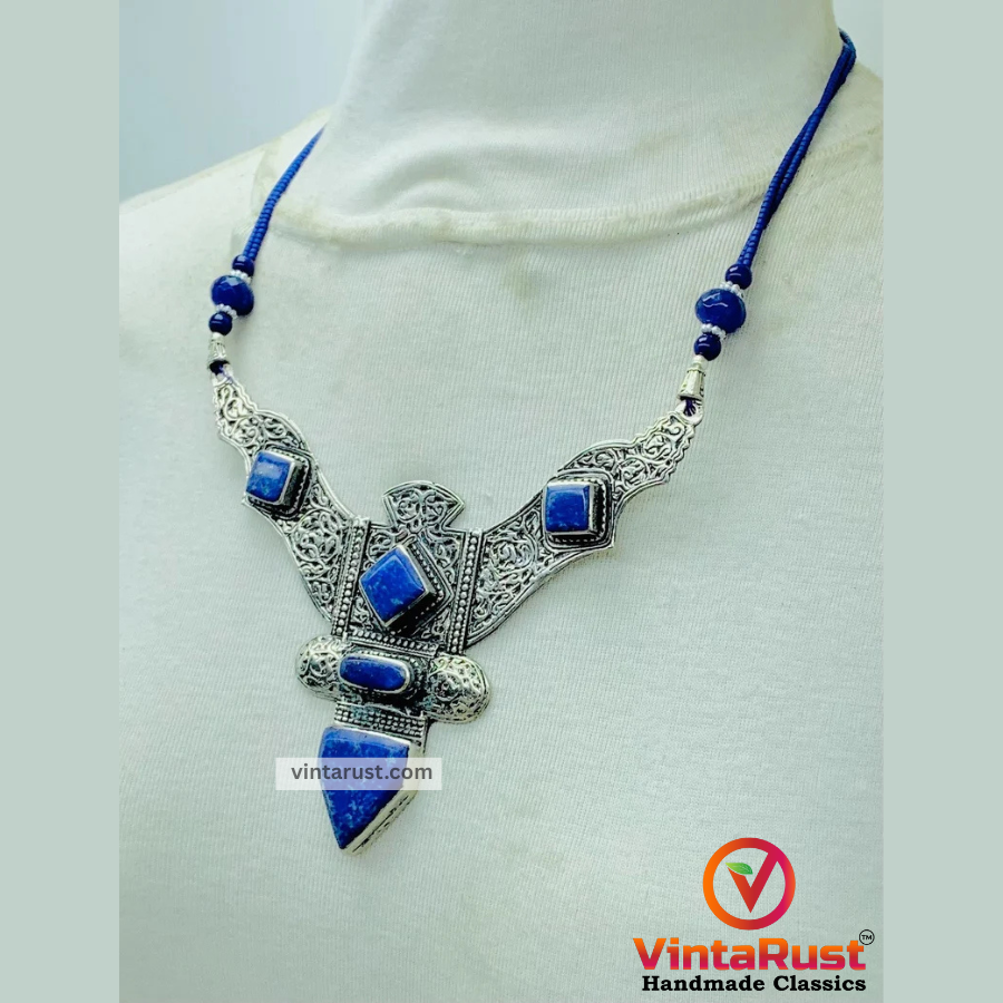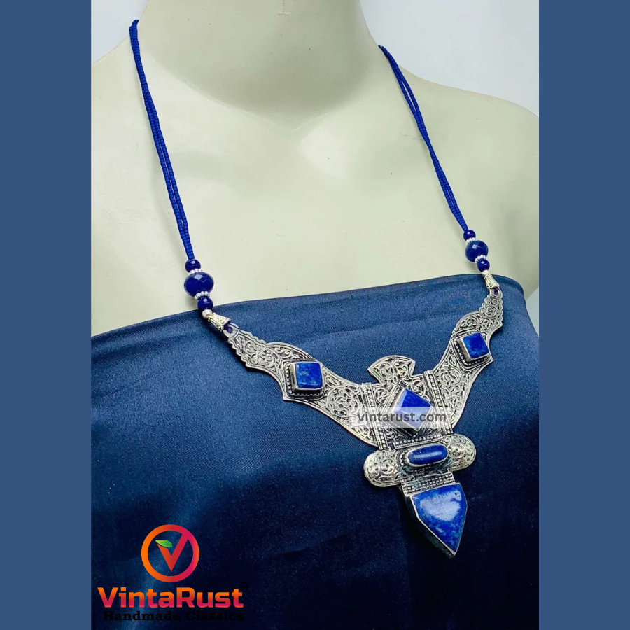 Whether you're an avid collector or someone looking for an eye-catching accessory, this pendant necklace offers both aesthetic beauty and spiritual significance. The combination of high-quality materials, authentic craftsmanship, and the mystique of Lapis Lazuli makes this tribal necklace a must-have addition to your jewelry collection.