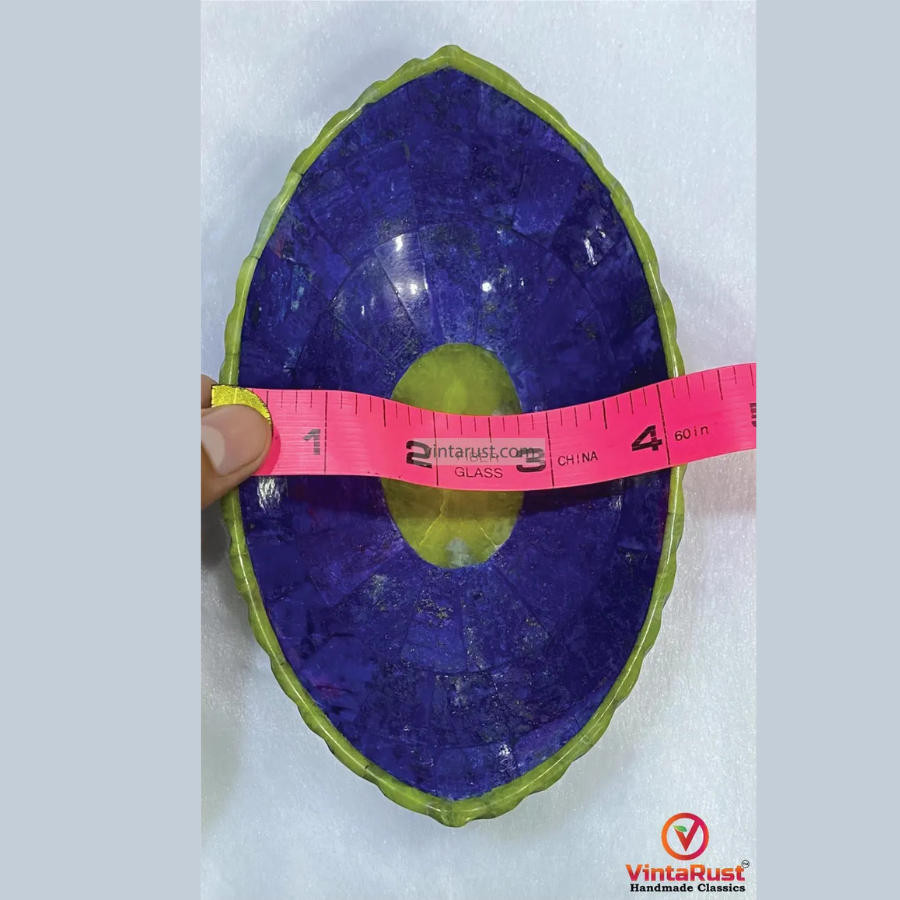 Lapis Lazuli and Jade Inlay Gemstone Bowl: Unique Oval Decorative Stone Dish
