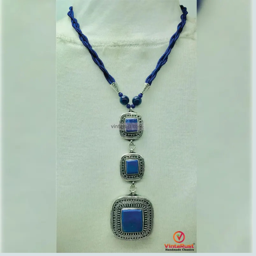 This Lapis Lazuli Triple Stone Pendant Necklace is a mesmerizing piece that brings together elegance and natural beauty. Featuring three Lapis Lazuli stone pendants, each carefully selected for its deep blue hues and natural patterns, this gemstone necklace is perfect for those who appreciate unique, meaningful jewelry. Known as a healing stone necklace, Lapis Lazuli is celebrated for its calming and spiritual properties, making it a powerful addition to any collection.