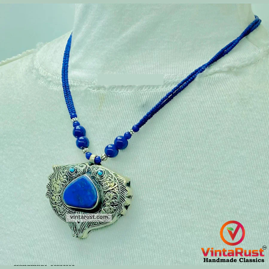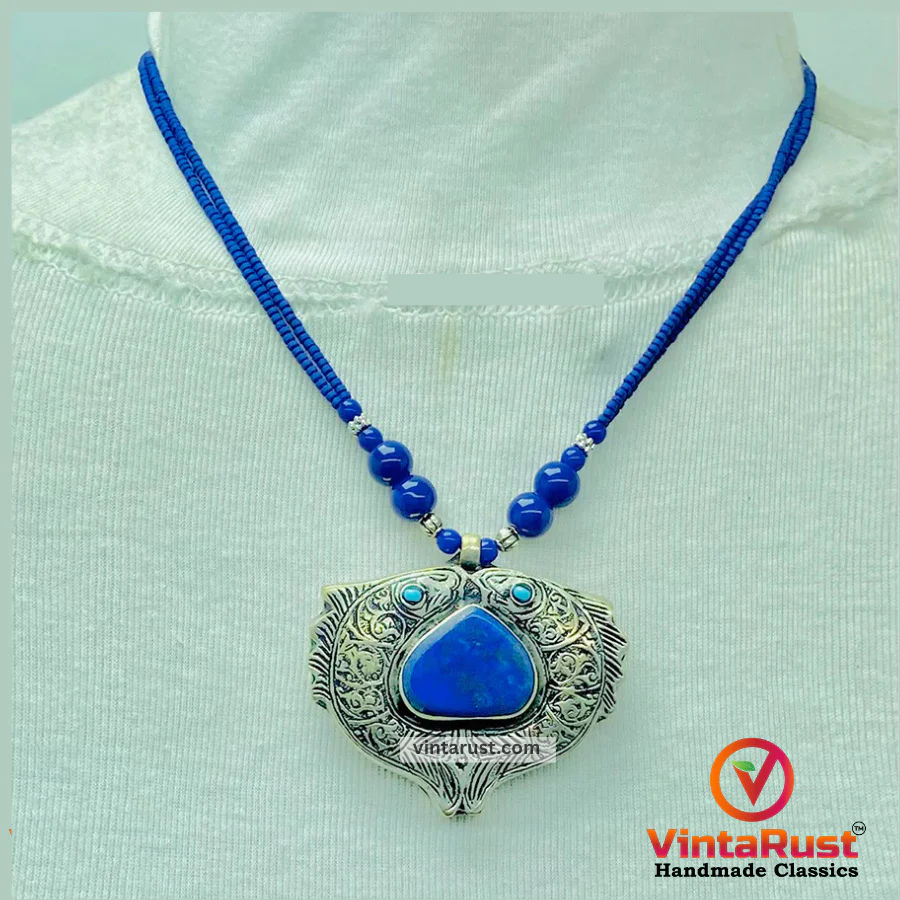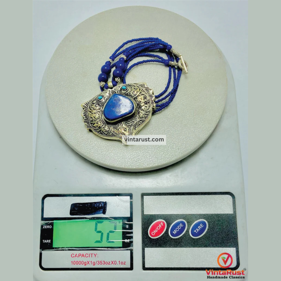 The lapis-lazuli stones are believed to boost the immune system, lower blood pressure, and soothe areas of inflammation. This elegant handcrafted lapis lazuli necklace radiates tradition and history. You can wear this necklace with any style and design.