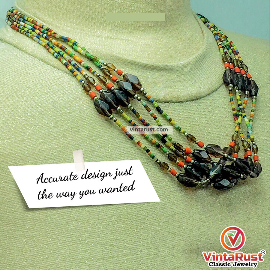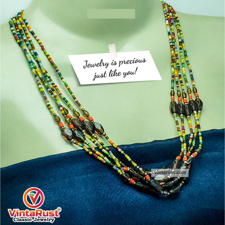 This multihued beaded necklace is so chic and charming handcrafted piece by our talented craftsmen that have worked on this cute and tantalizing-looking necklace. This colorful multilayer choker necklace adds fun and color to any outfit and style.