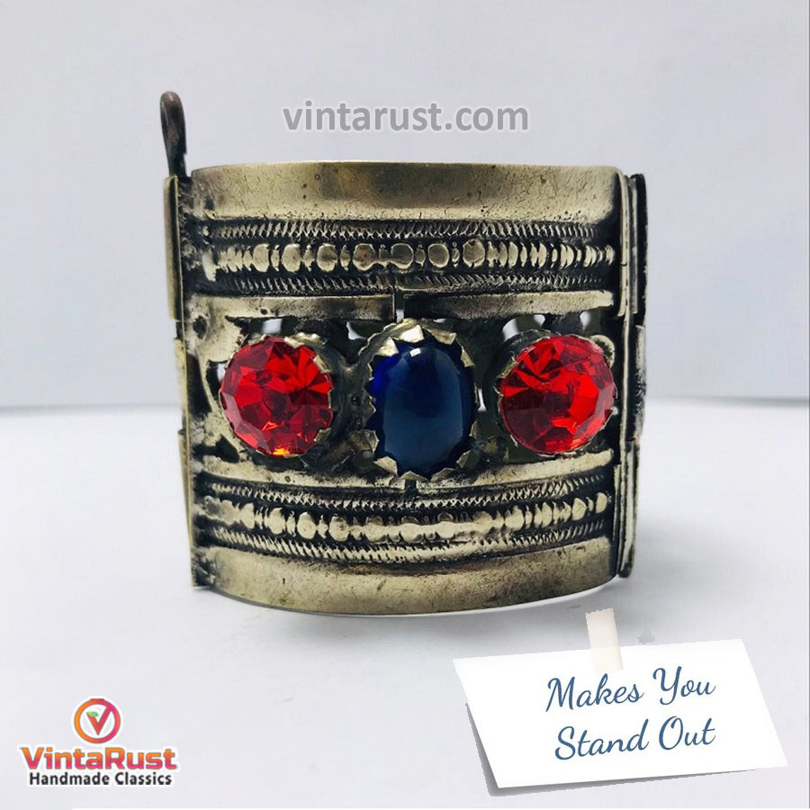 Elevate your style with our exquisite Nomadic Red and Blue Glass Stone Cuff Bracelet. Crafted with precision and passion, this statement piece blends traditional craftsmanship with contemporary elegance. The vibrant hues of red and blue glass stones evoke a sense of wanderlust, perfect for the free-spirited nomad in you.