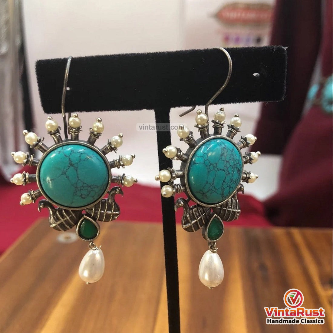 Whenever you wear these earrings, you'll instantly feel more relaxed and at ease. Order your Pearls and Turquoise Stone Earrings today and add a touch of elegance and bohemian charm to your jewelry collection.