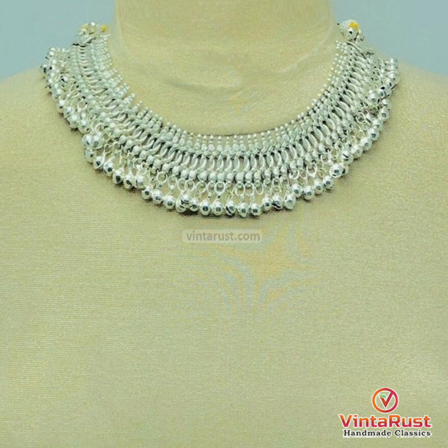 This elegant and beautiful choker is handcrafted by talented craftsmen of South Asia. Silver rhythmic bells are rimmed all over this vintage tribal jewelry piece. The shimmer and shine after wearing this stunning Afghani tribal choker necklace will be exceptional.