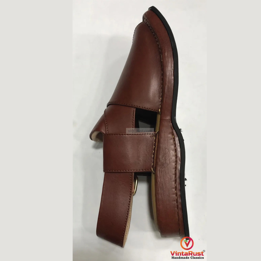 Peshawari chappals are the perfect addition to your men’s footwear collection. Made from premium high-quality leather, these maroon leather sandals feature an extra sole for enhanced comfort and neat stitching for a refined, polished look. Known for their classic design and durability, these flat leather sandals are a staple in men's traditional shoes.