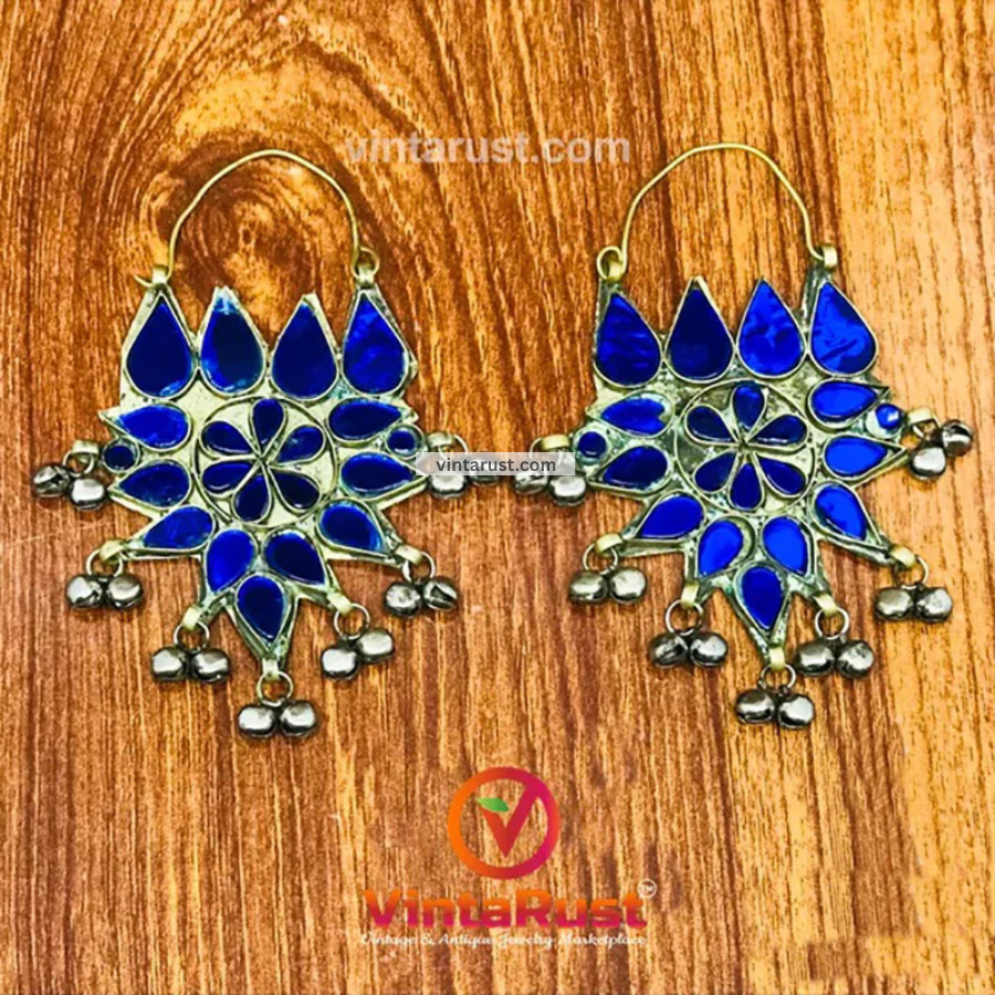 The Ethnic Glass Stones Floral Earrings with Silver Bells from Vintarust are a beautiful and unique piece of jewelry. These earrings feature a delicate floral design made with colorful glass stones, which are set in silver-plated metal. The intricate design of the flowers is accented with small silver bells that add a subtle touch of movement and sound to the earrings