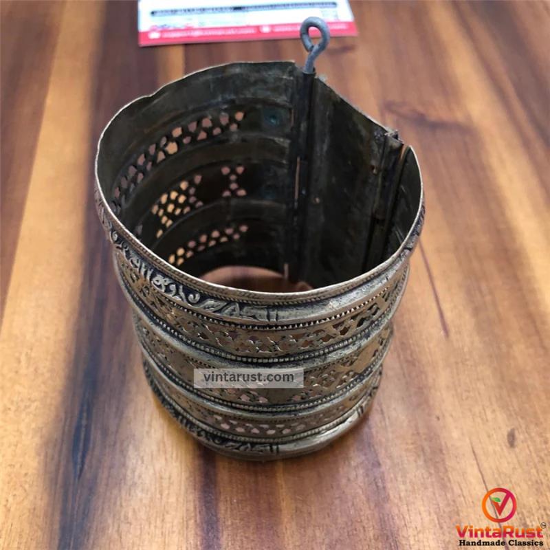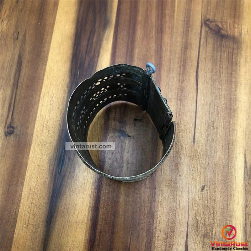 This golden-toned vintage tribal handcuff is an outstanding addition to our tribal and vintage jewelry collection. The glass stones beautified on this tribal piece are enhancing its look and the design carved on this masterpiece is giving complete antique vibes. The rustic color shows how effortlessly this piece is giving a vintage look.