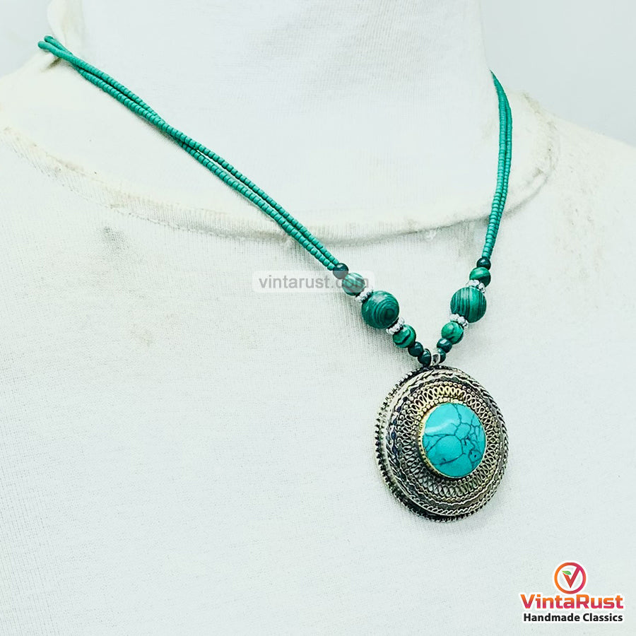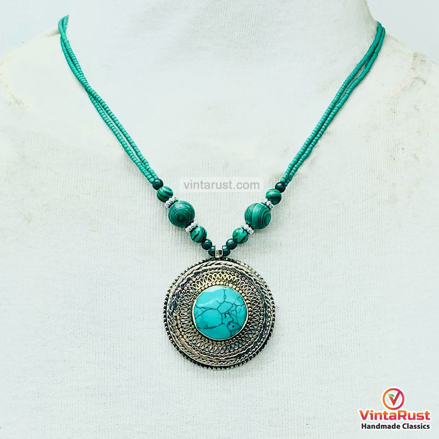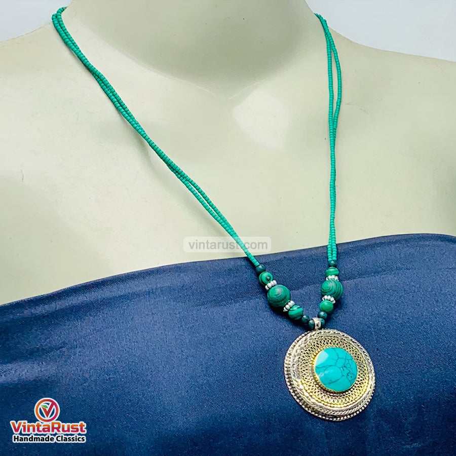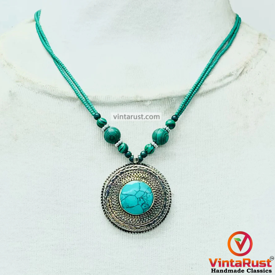 Elevate your style with this Turquoise Beaded Pendant Necklace, a stunning ethnic-inspired jewelry piece that combines timeless elegance with vibrant color. Handcrafted with care and attention to detail, this necklace is a true testament to artisan craftsmanship.