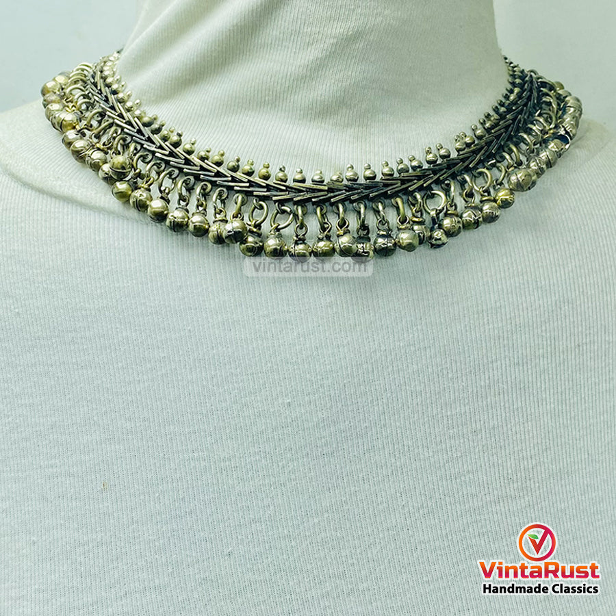 Designed in an antique silver tone, this choker reflects true nomadic craftsmanship and ethnic heritage. The delicate bell details add character and a subtle jingle, making it a perfect statement accessory for boho fashion lovers, festival wear, and cultural styling.