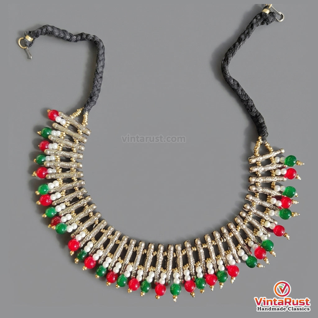 Handcrafted with meticulous attention to detail, this statement piece is designed to elevate your fashion game. Featuring sleek metal spikes meticulously arranged along the choker, this necklace exudes an air of confidence and individuality. The addition of beautiful beads adds a subtle hint of elegance and charm, making it suitable for various occasions.